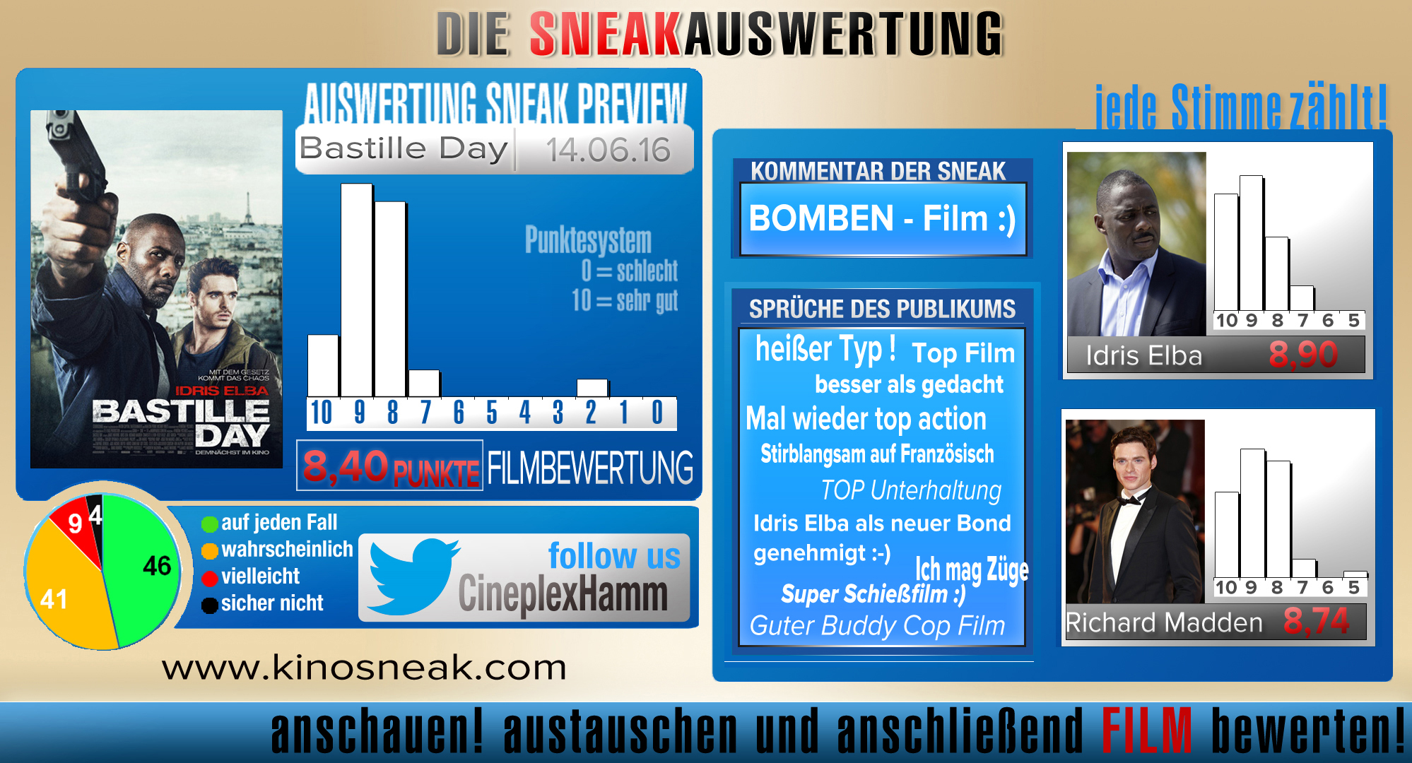 Auswertung Sneak Preview BASTILLE DAY vom 14.06.2016