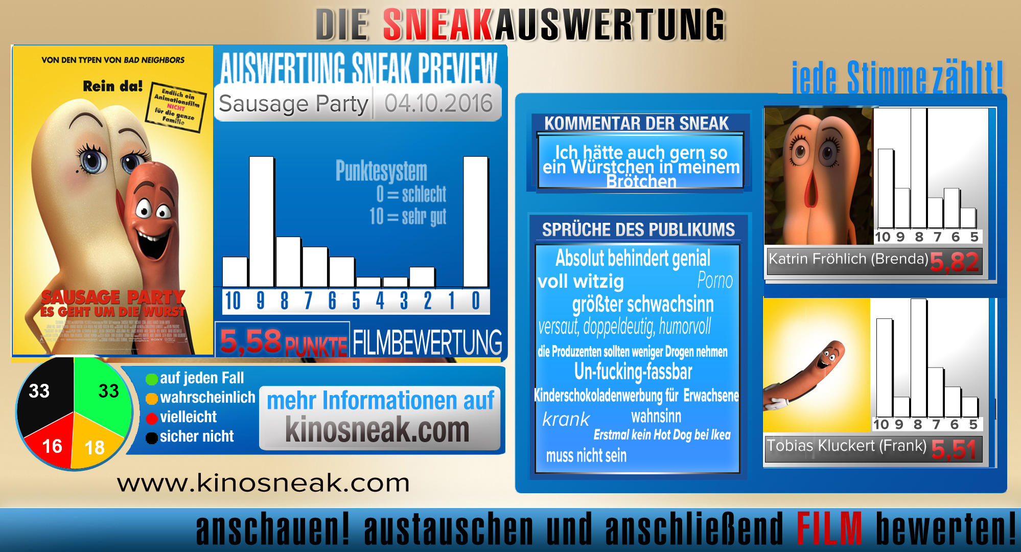 Sneak Preview Auswertung Sausage Party vom 04.10.2016
