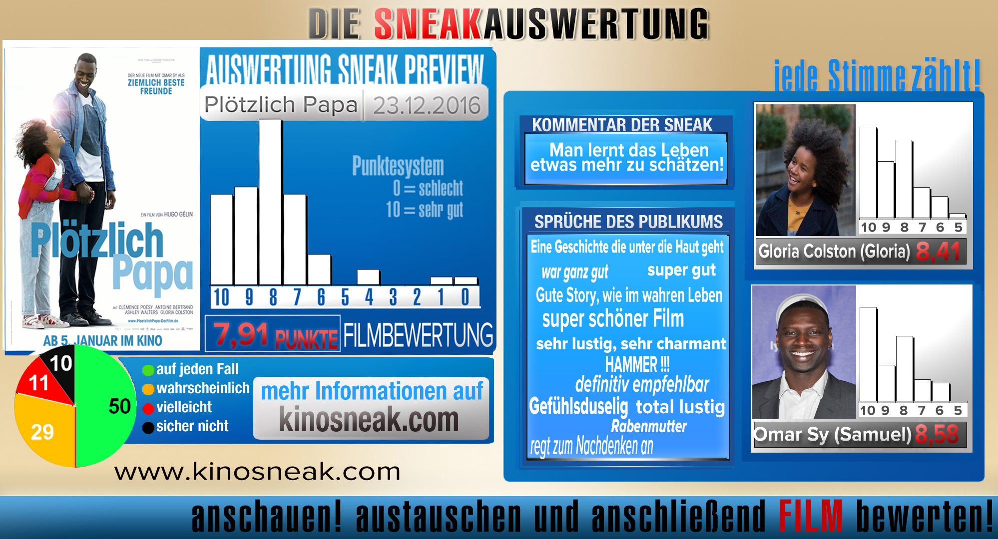 Auswertung Doppelsneak Film 2 „Plötzlich Papa“ vom 23.12.2016