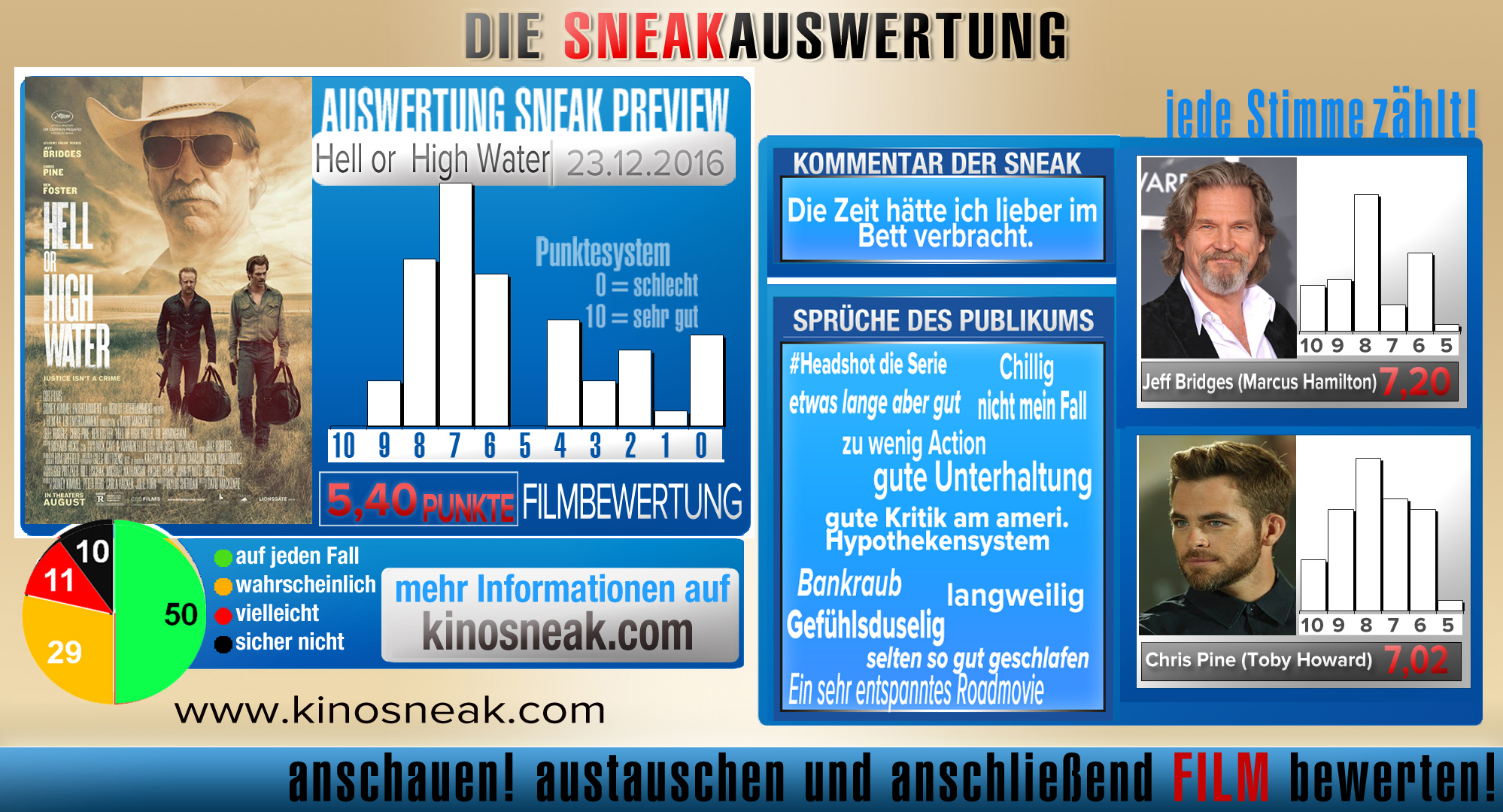 Sneak Auswertung Doppelsneak Film 1 „Hell or High Water“ vom 23.12.2016